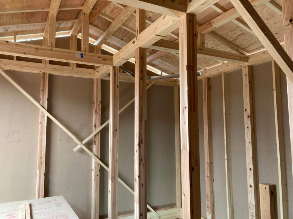 昨日、上棟しました。おめでとうございます。これから木工事を進めていきます。