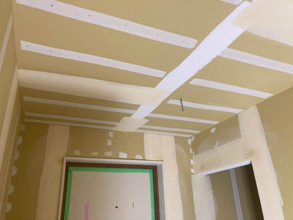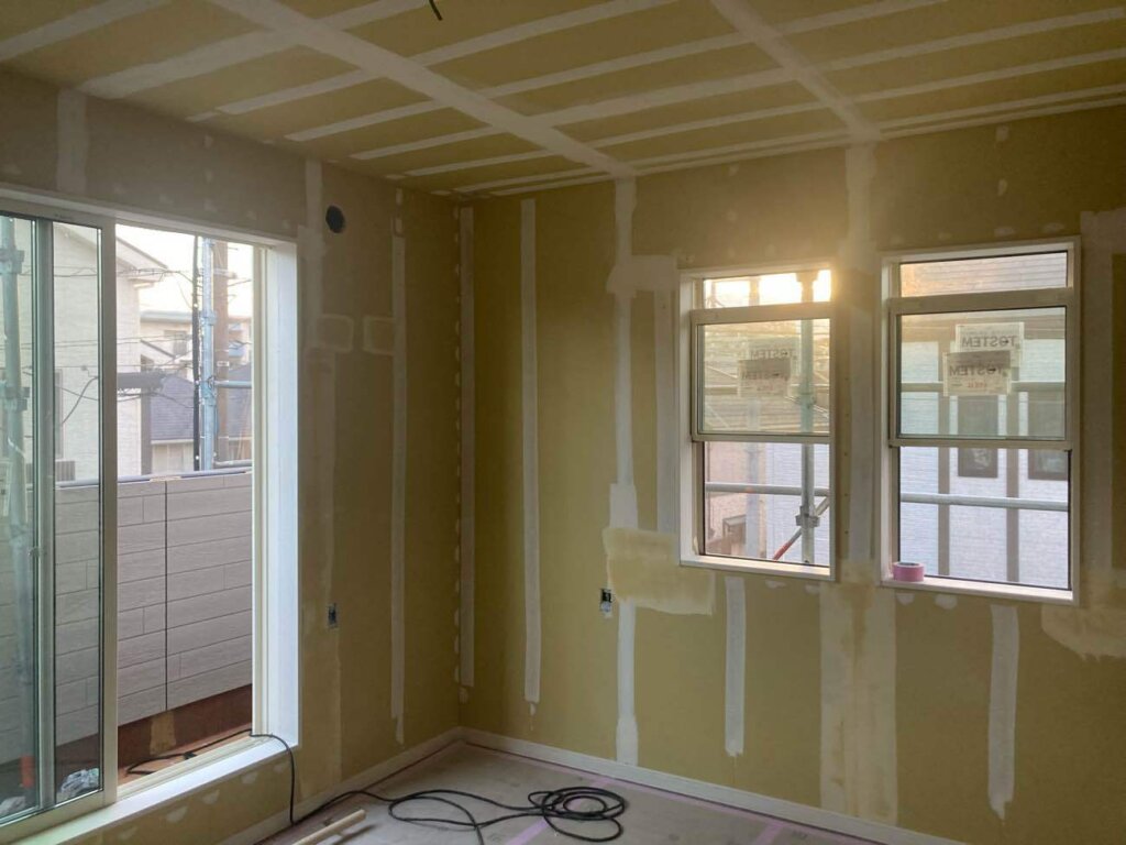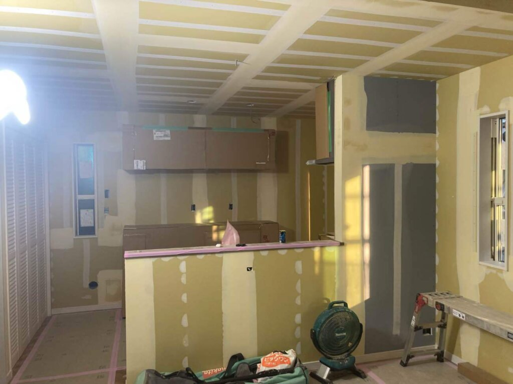 大工さん工事が完了し内装パテ処理を行ってます。これから内装クロスを貼っていきます。