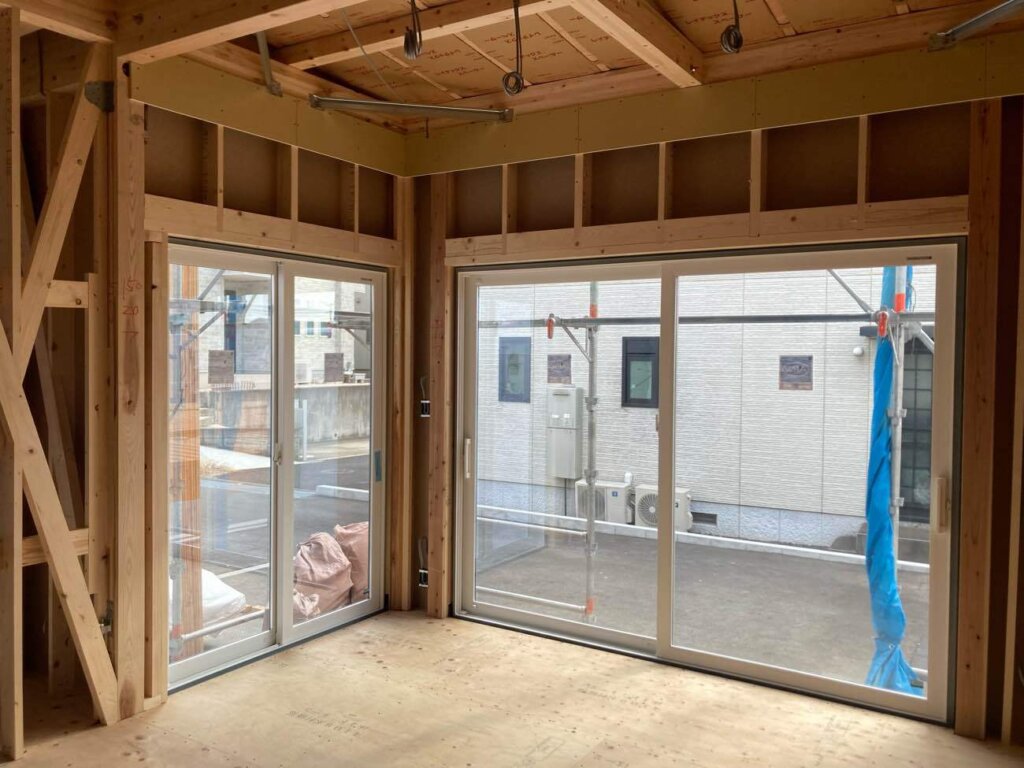 内部先行設備配管が完了しました。これから断熱材を施工していきます。