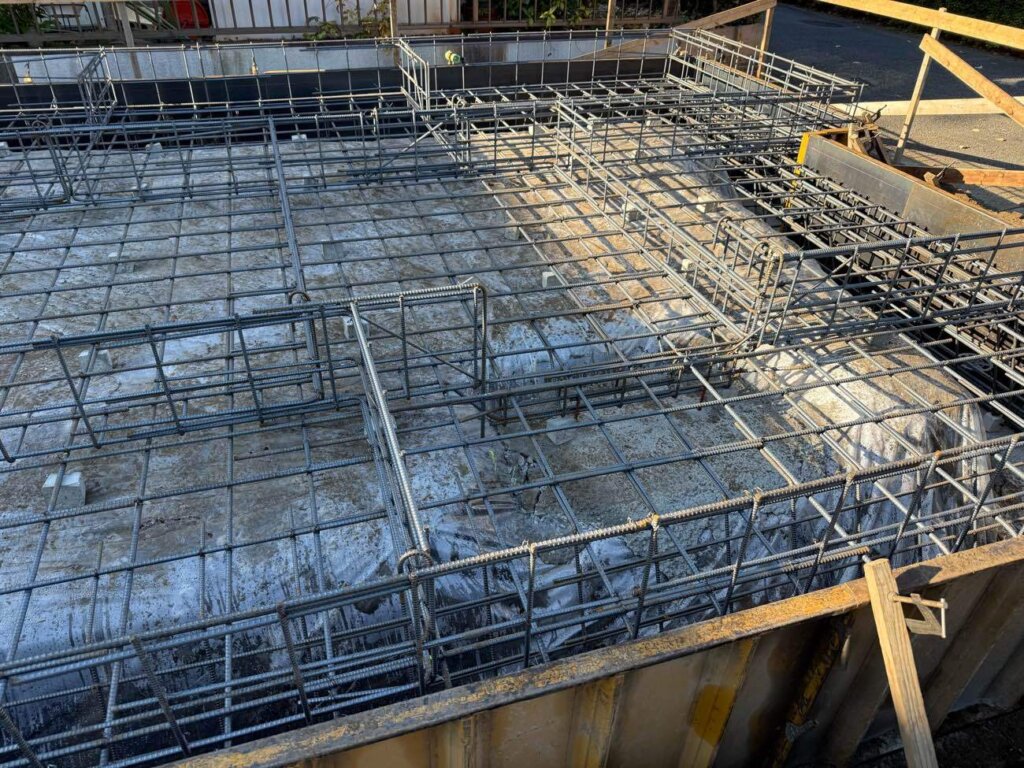 設備工事のスリーブ設置しましたので、コンクリート打設になります。
