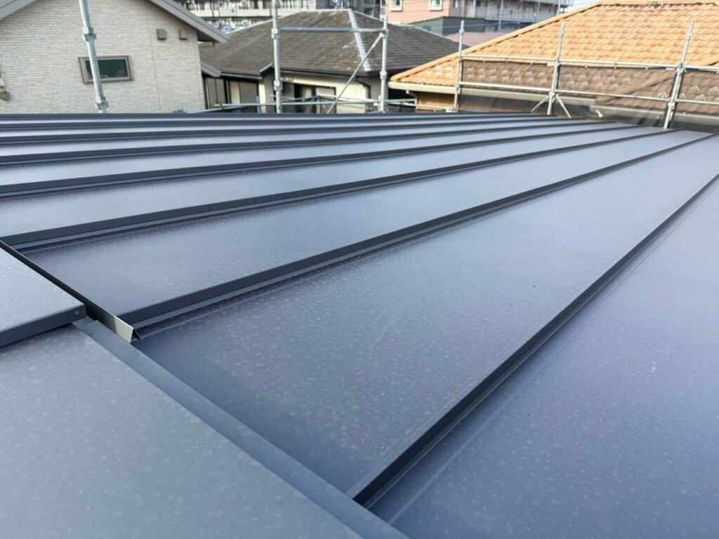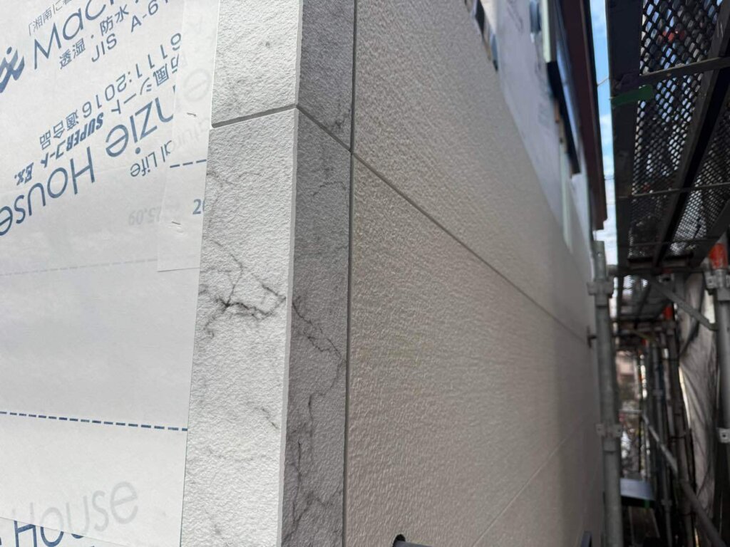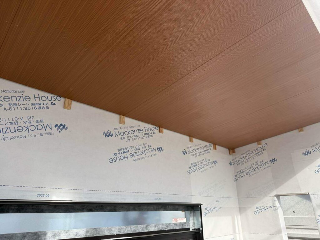 屋根工事、軒裏完了し、サイディング張りが順調に進んでおります。