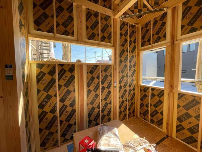 壁断熱の施工が完了しました。