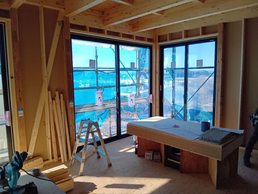 サッシ施工状況になります。