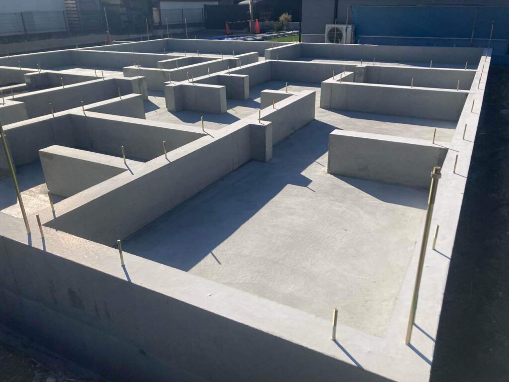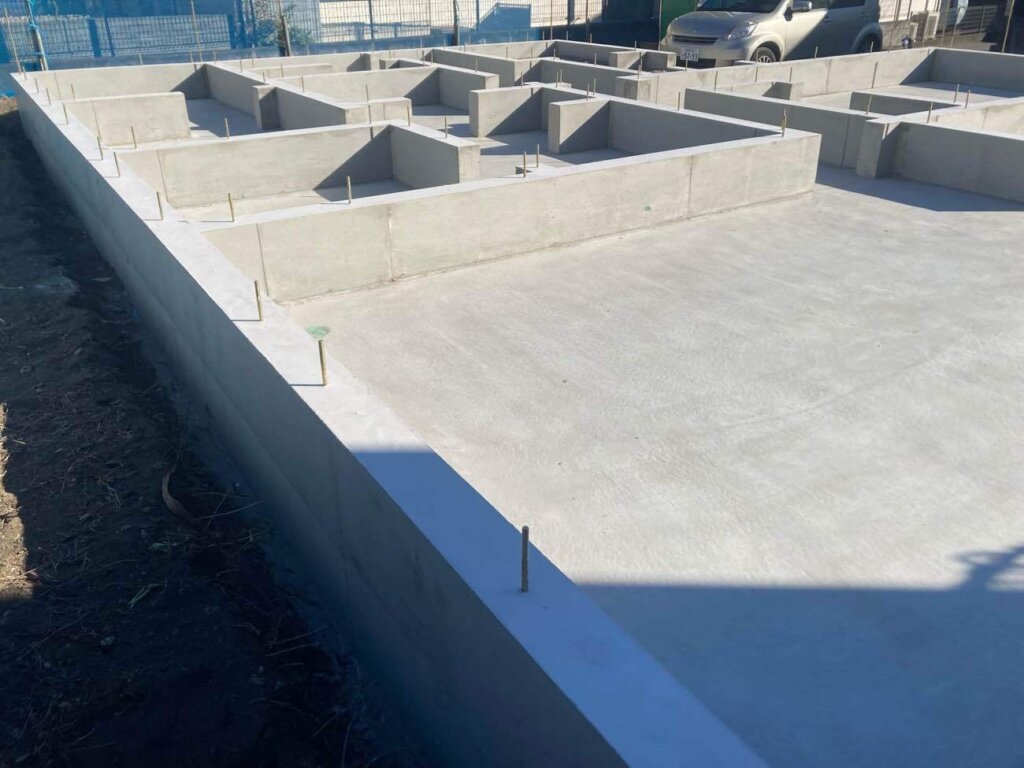 基礎工事が完了しました、これから先行設備配管を行って木工事になります。