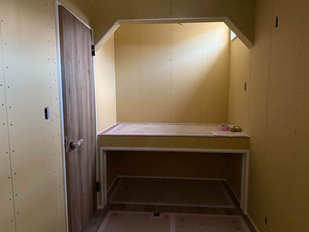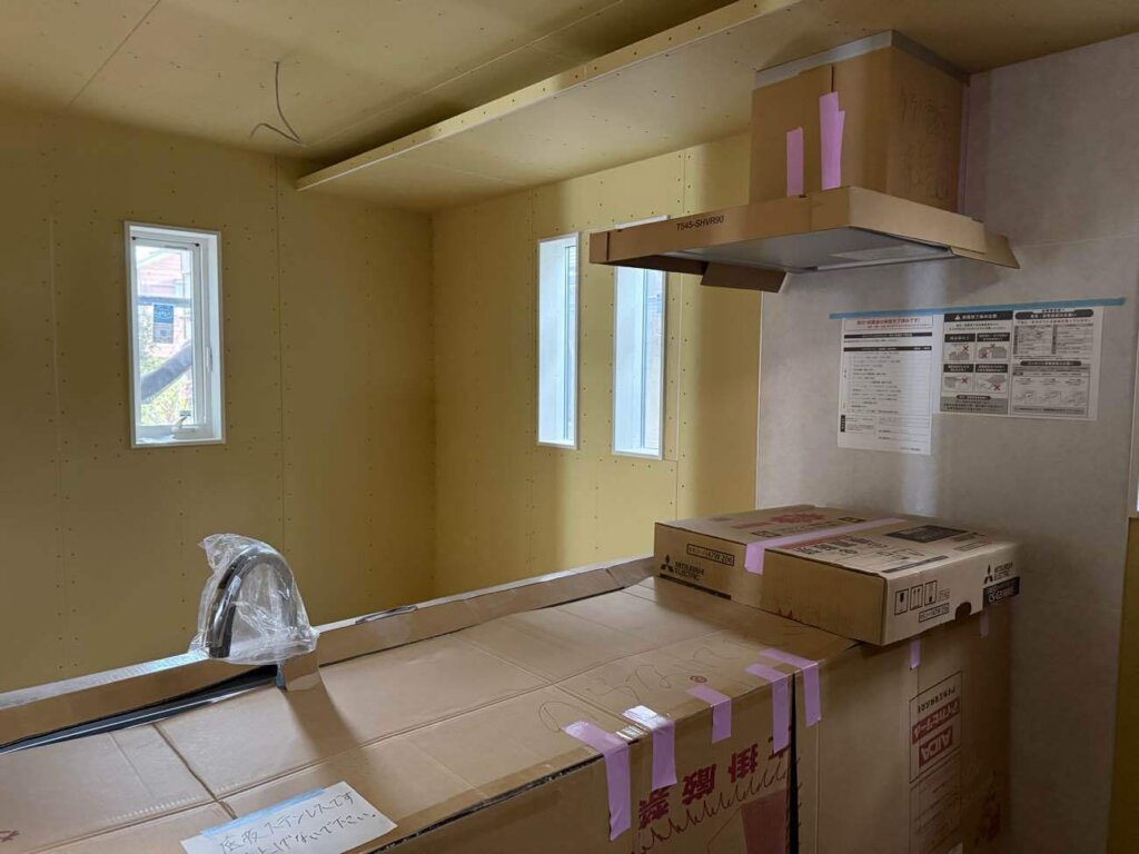 木工事が完了し、システムキッチンを取り付けしました。