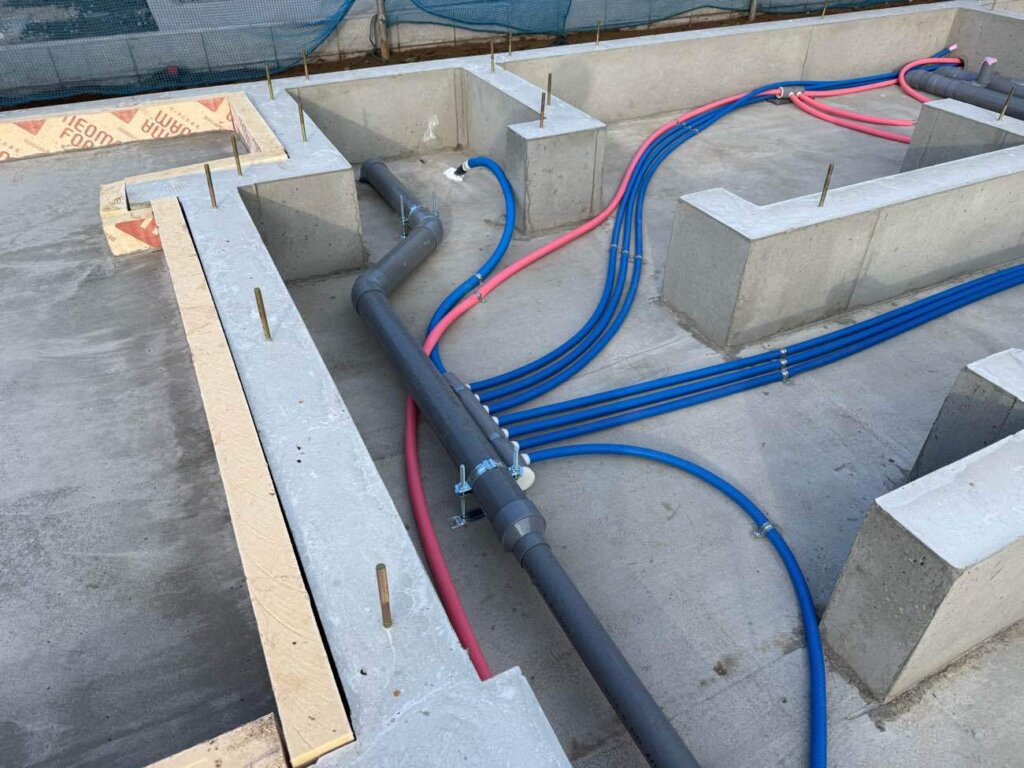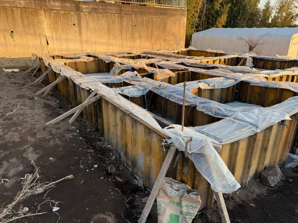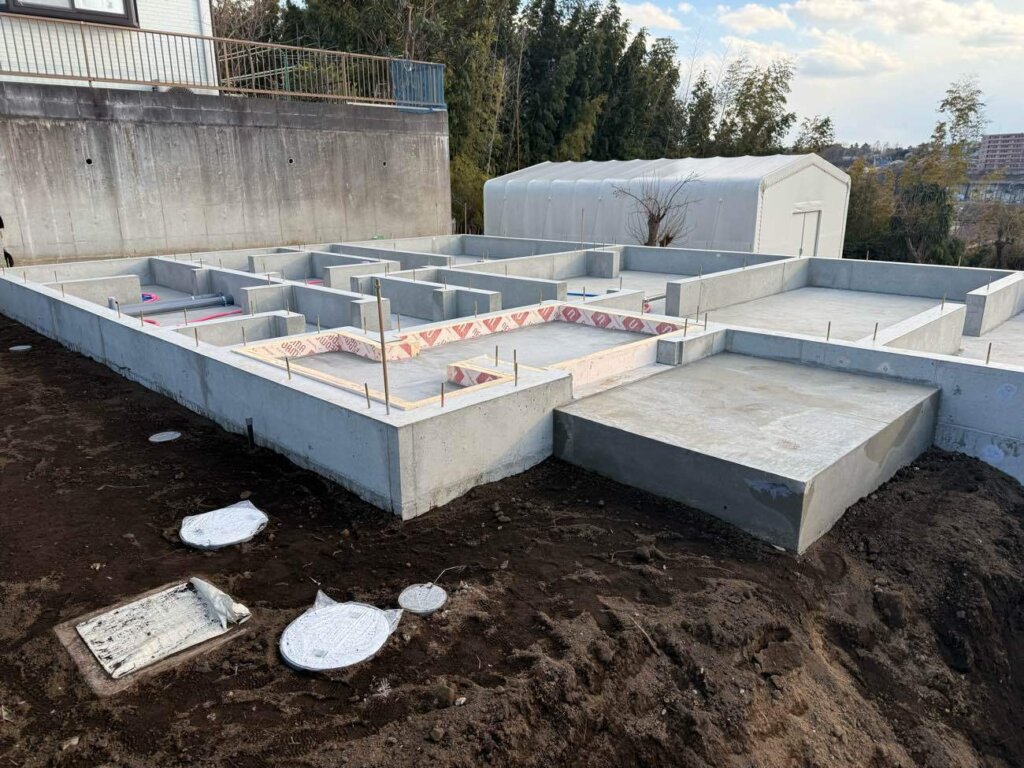 厚木市 M様邸(注文住宅) 2026年1月29日 NEW カテゴリー / atugishi コンクリート打設し基礎工事が完了しました。 先行設備配管工事まで順調に進みました。 次工程は足場組立し、いよいよ上棟となります。