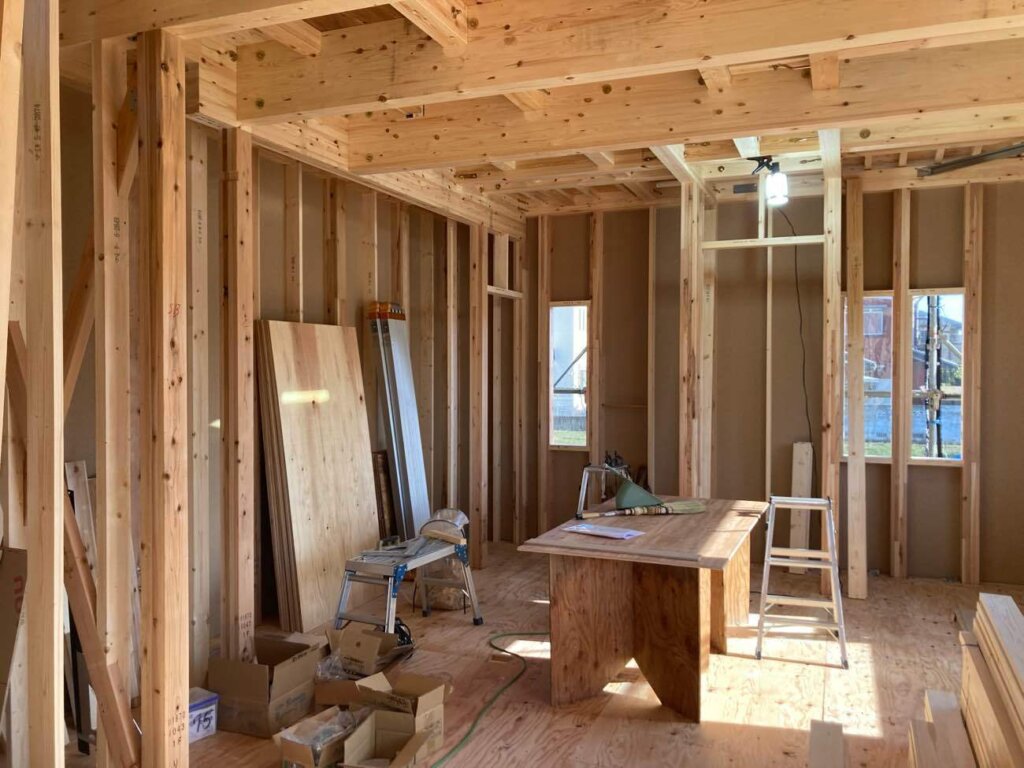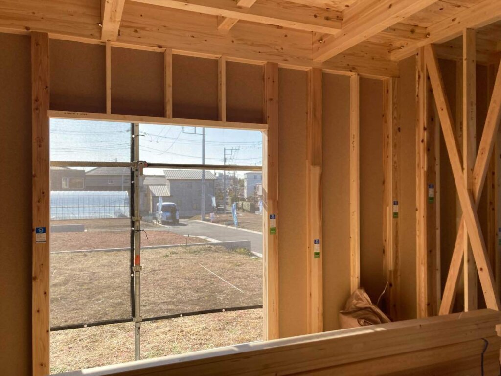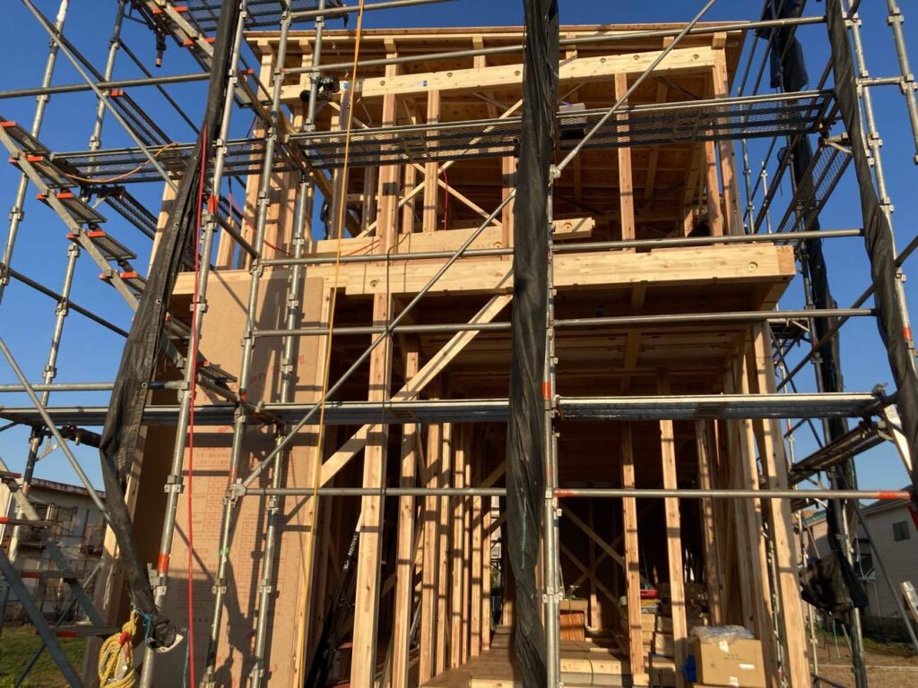 先日上棟し金物取付・下地入れ等を行っております。これからサッシ取り付けになります。