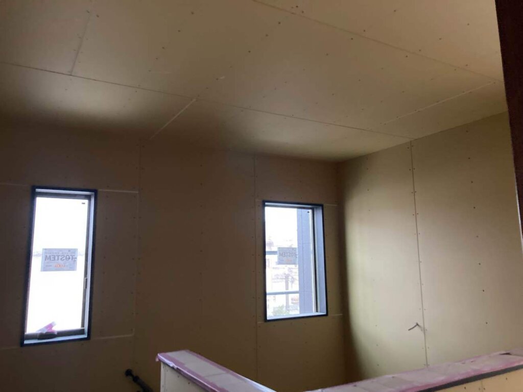 木工事が完了しました。これから内装クロス工事を進めていきます。