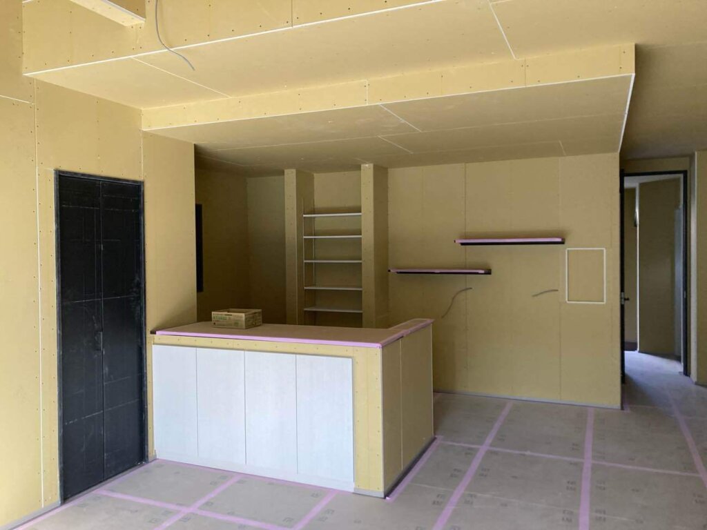 木工事が完了しました。これから内装クロス工事を進めていきます。