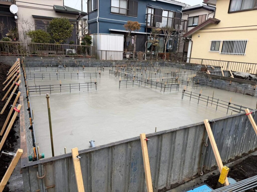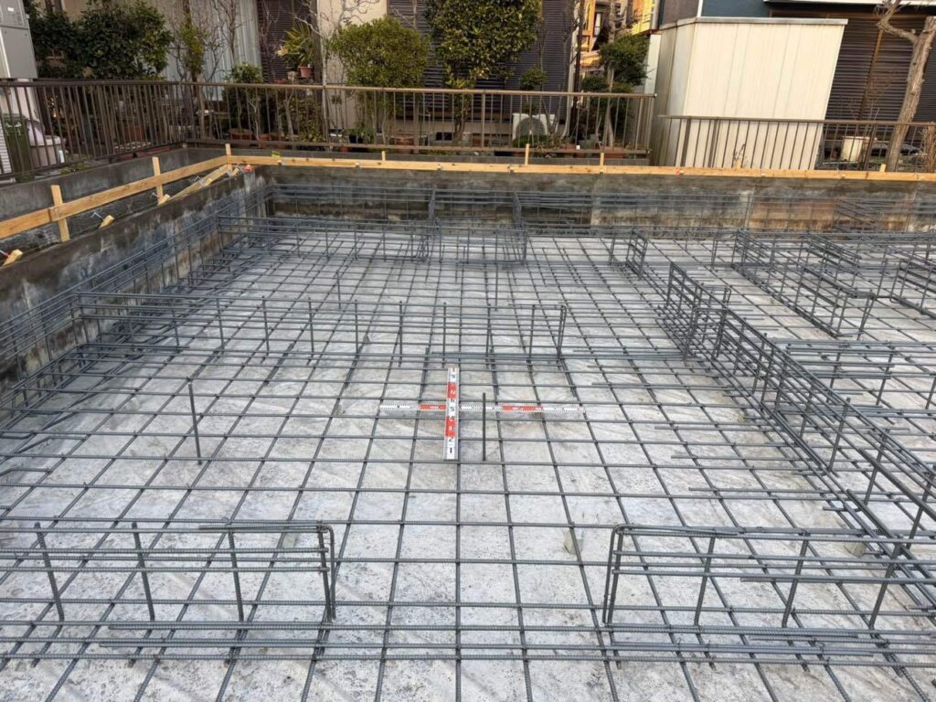 基礎工事が進み、外周枠組、配筋検査~スラブコンクリート打設まで順調に進んでおります。