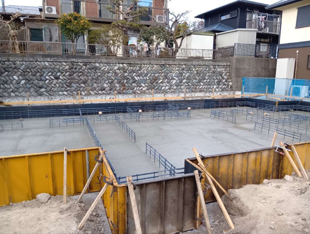 耐圧盤・立上がりのコンクリート打設状況になります。
