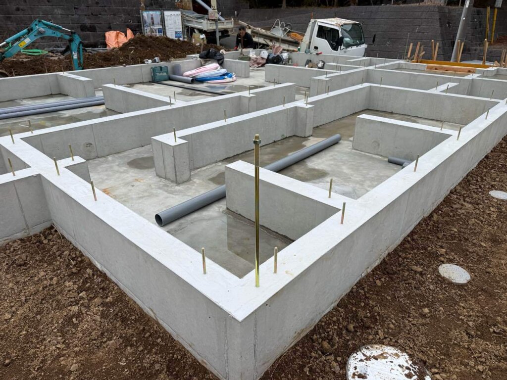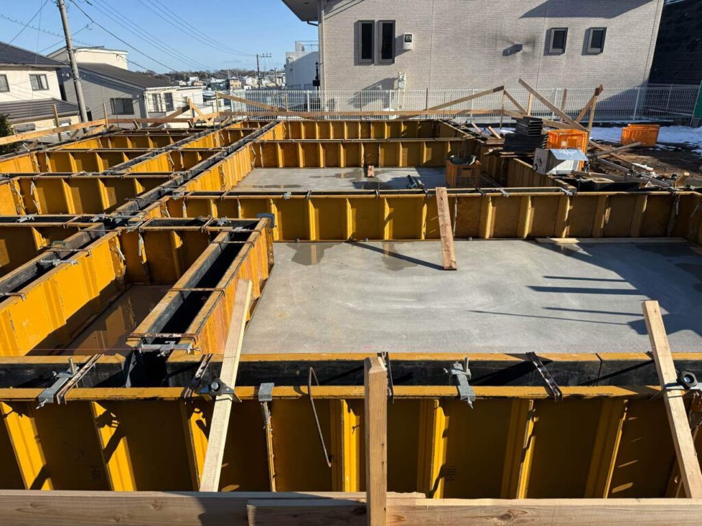 コンクリート打設~枠をばらし、設備配管施工中です。