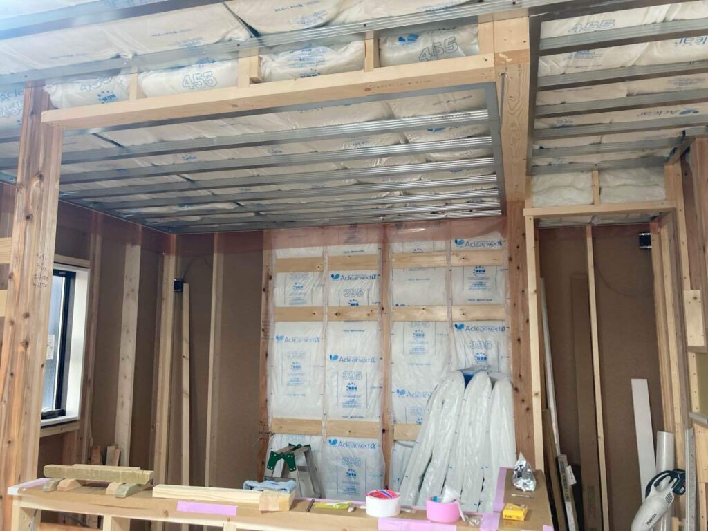 内部の断熱工事が完了しました。これからフロアー施工を進めていきます。