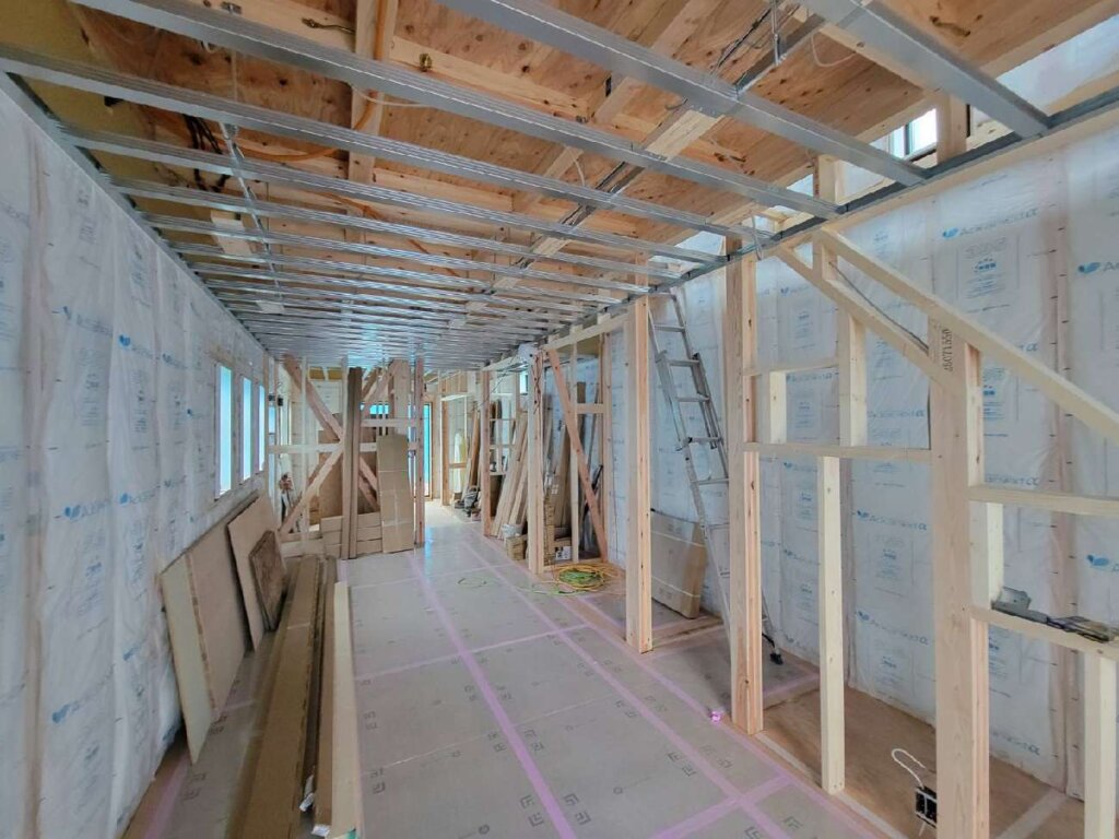 平塚市F.K様邸(注文住宅) 2026年3月7日 NEW カテゴリー / chigasakisi 壁下地・天井下地・断熱材の施工状況になります。 少しずつ形になっていきますね! 引き続きよろしくお願いいたします。
