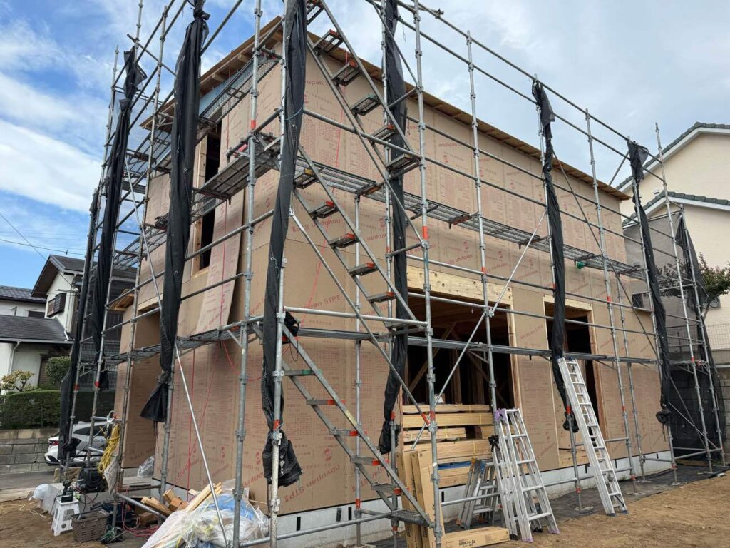 厚木市 T様邸(注文住宅) 2025年10月2日 NEW カテゴリー / atugishi 防水、サッシ取付、透湿防水紙張り完了しサイディング張りになりました。 内部工事は断熱材施工、軽天組みと順調に進んでおります。 VIEW ALL