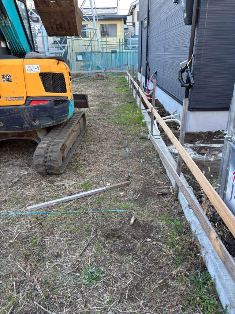 基礎工事、着工しました。これから根伐り・地業を進めていきます。