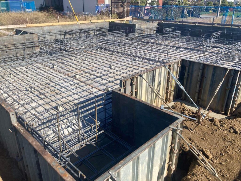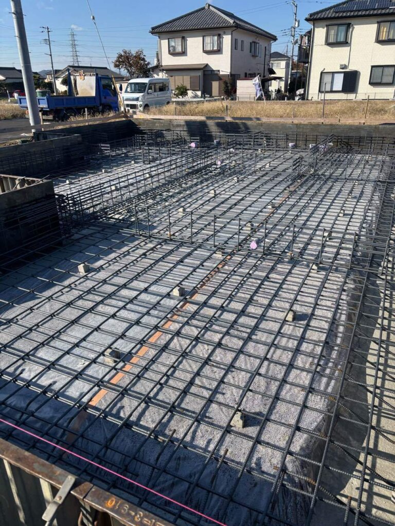 基礎配筋が完了しました。明日からコンクリート打設を進めていきます。