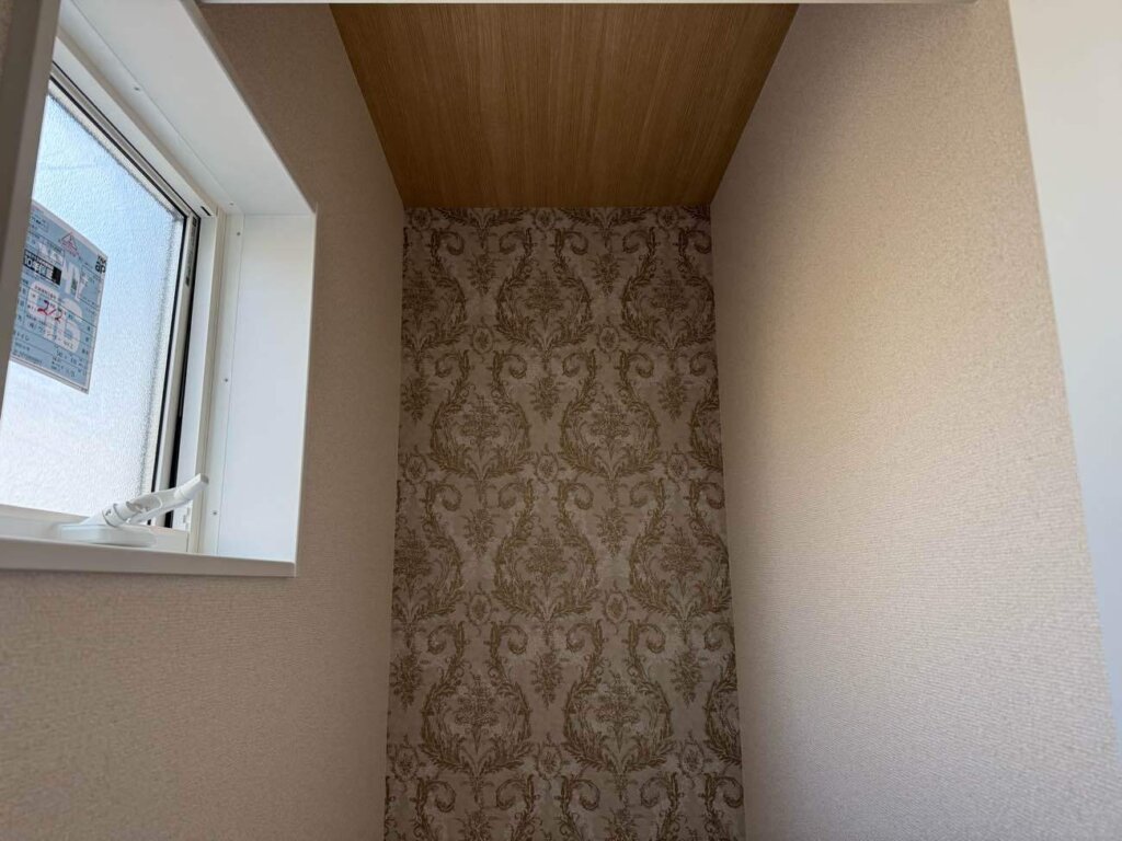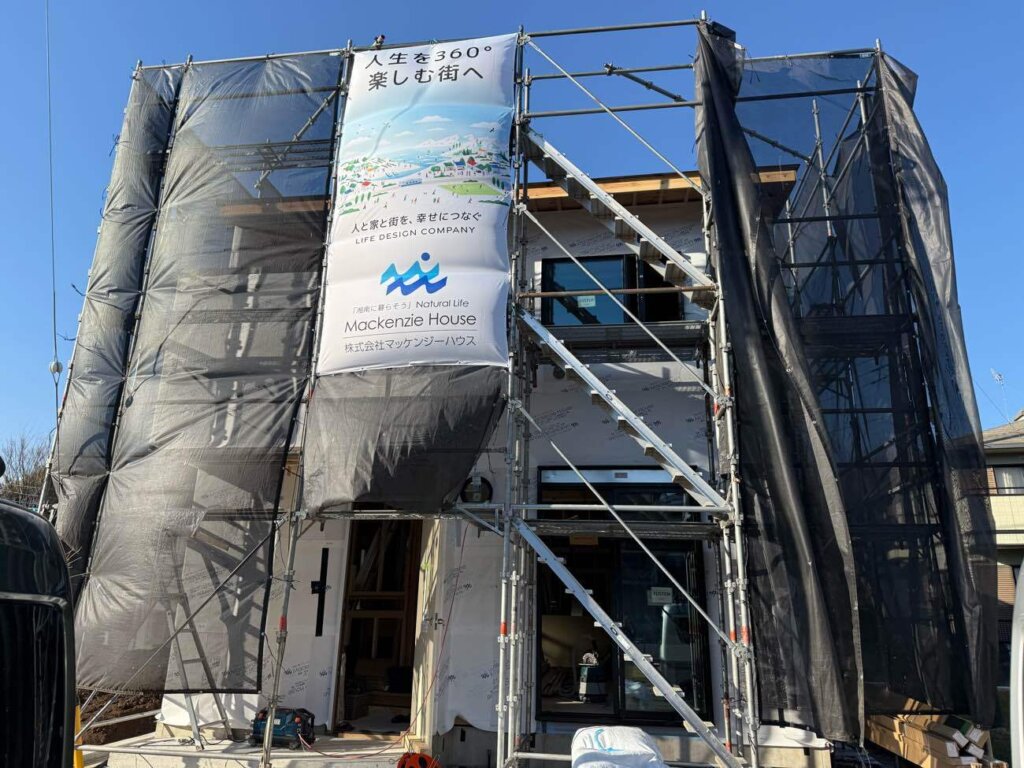 クロス工事が完了があと少しとなり、外部工事は塗装工事中です。