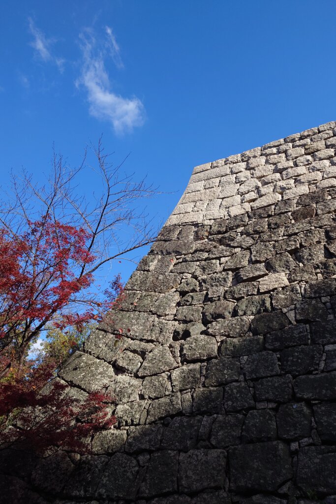 丸亀城は香川県丸亀市にあり、石垣の高さが日本一なことで有名なお城で全国に12しかない現存木造天守閣のうちのひとつです。現存天守は高さ約14mと大きくはありませんが、高さ60mの石垣の上に建てられていることで、建物の大きさ以上に存在感を放っています。高さ約60メートルの石垣は、下から上へと優雅に反り上がる「扇の勾配」と呼ばれてる美しい石垣です。石垣のスケール感や職人技を、ぜひ現地で体感してください。