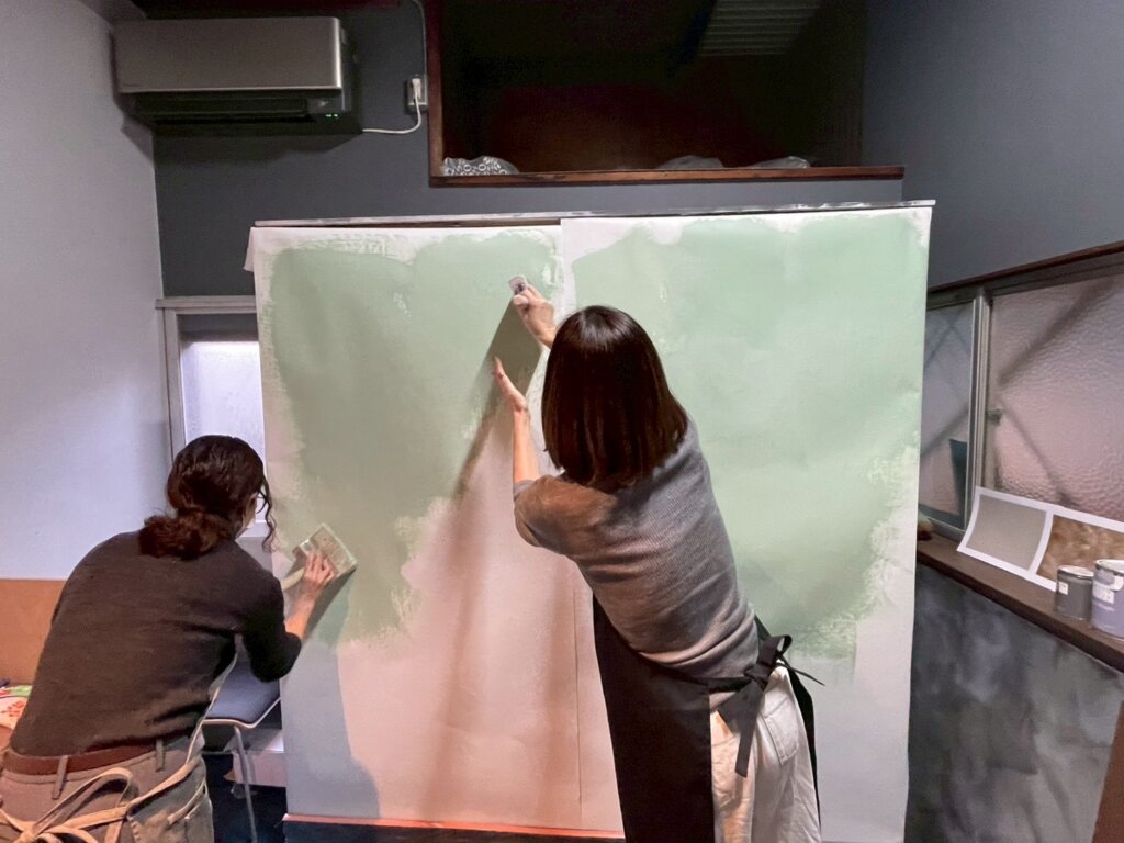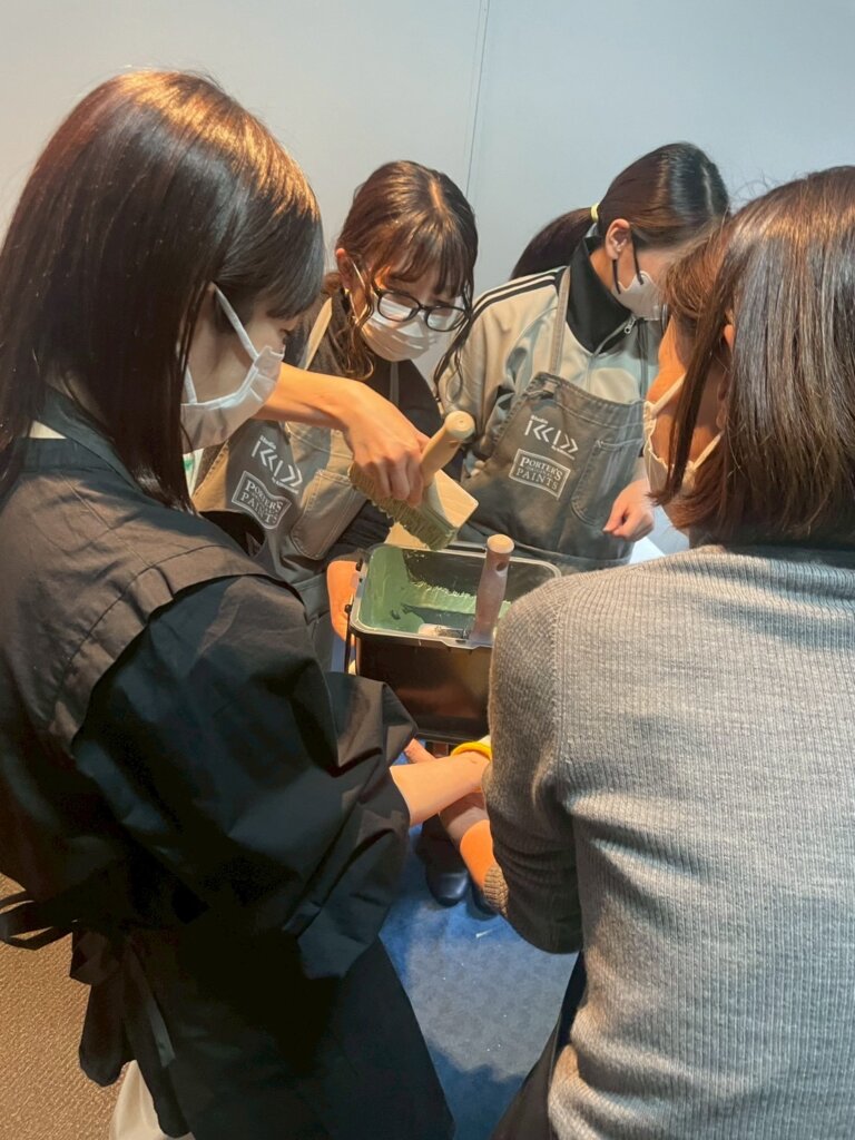 専用の刷毛で、綺麗に塗料を伸ばすコツなど丁寧に教えて下さいました。