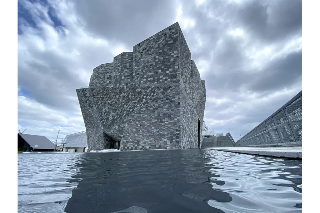 花崗岩を約20,000枚使用し複雑に組み合わされた石板の凹凸は、太陽光が外壁を照らす角度によって、さまざまな表情を生み出します。